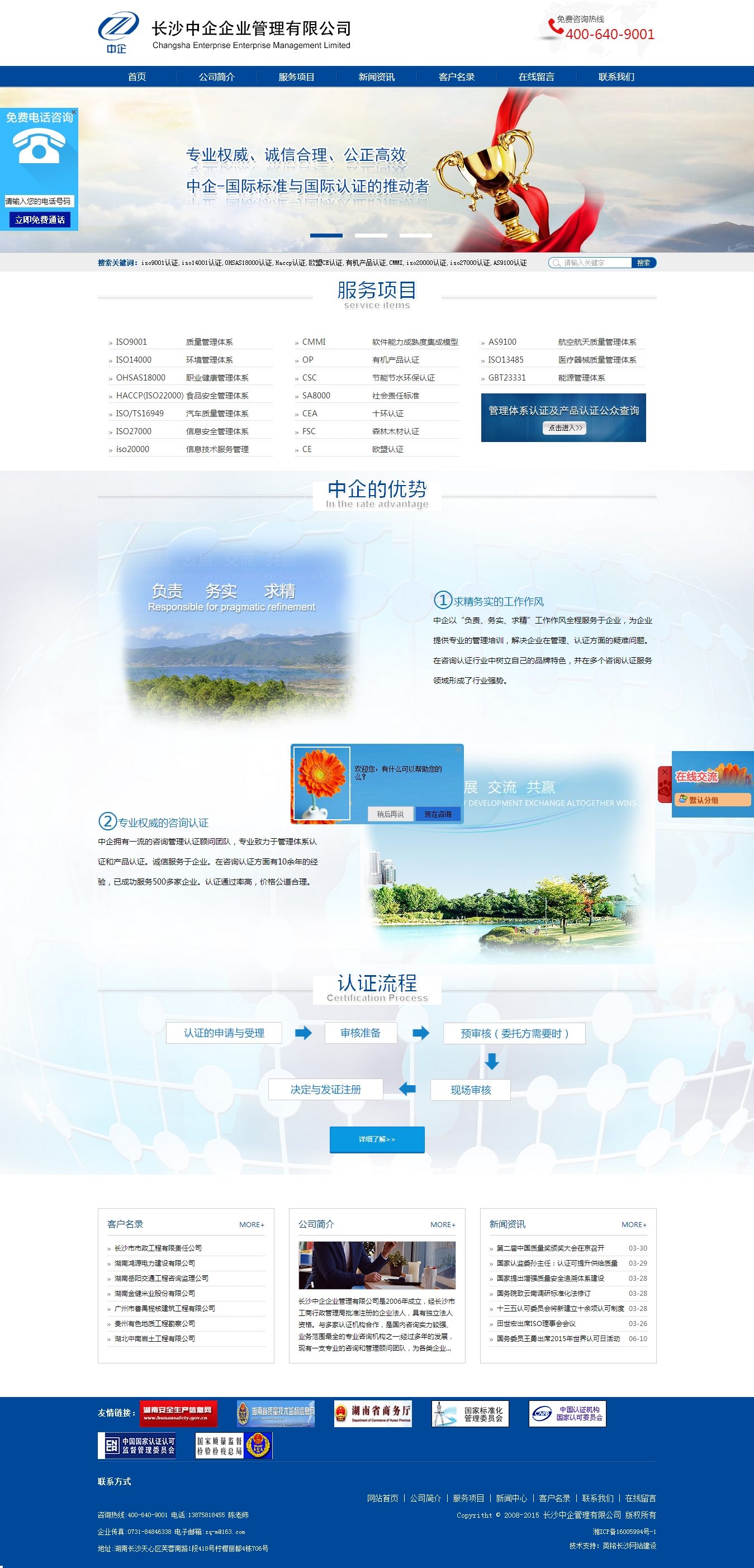 长沙中企企业管理有限公司是2006年成立,经长沙市工商行政管理局批准注册的企业法人,具有独立法人资格。与多家认证机构合作,是国内咨询实力较强、业务范围最全的专业咨询机构之一;经过多年的发展,现有一支专业的咨询和管理顾问团队。